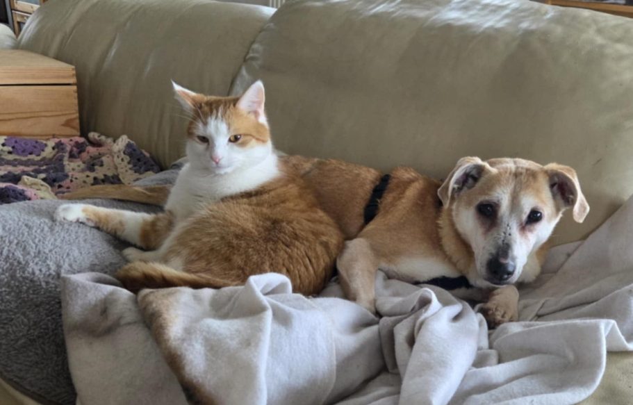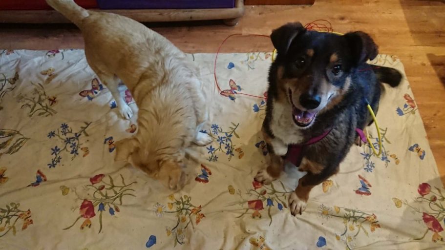 Togi versteht sich mit anderen Artgenossen und auch mit Katzen.