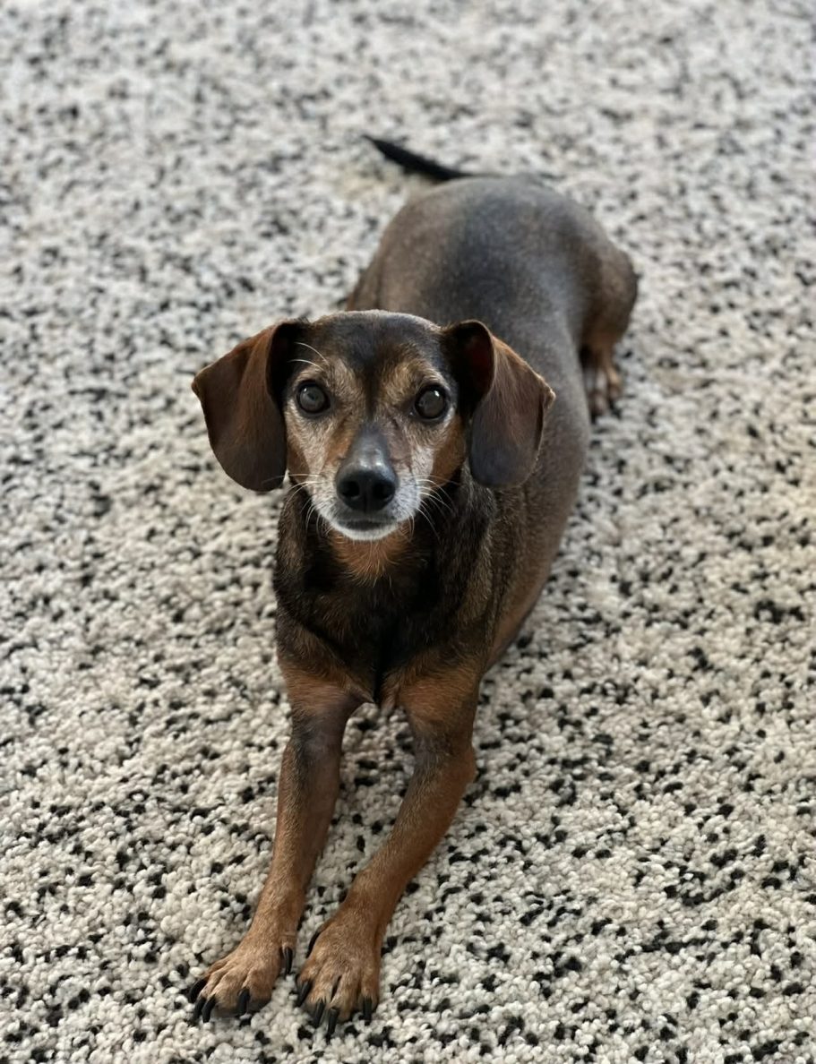 Ricky ist ein 7 Jahre alter, kastrierter Dackelmischling mit einer Schulterhöhe von ca. 30 cm.